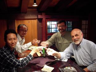 写真は右から、Beecher 教授、コンサルタントのウィリアムさん、HMTの石川、大賀です。地元の名産を使った和食に「fantastic!」とのご感想でした。今日のランチに行った農家レストランでも、「お店の人においしかったと伝えてください」とおっしゃるほど気に入っていただけたようでした。