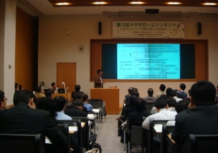 10月30日から11月1日まで第3回メタボロームシンポジウムが山形県鶴岡市で開催されました。定員120名のところ、227名の参加があり、講堂からあふれるほどの盛況でした。今回は医薬、医療分野への応用という限定されたテーマにもかかわらず、227名もの方が参加されたということはメタボローム解析の有用性が認められてきたしるしではないでしょうか。 最近、急速に注目されてきている食品、エネルギ分野なども含めると、収集がつかないくらいの参加者になっていたのではないかと思います。